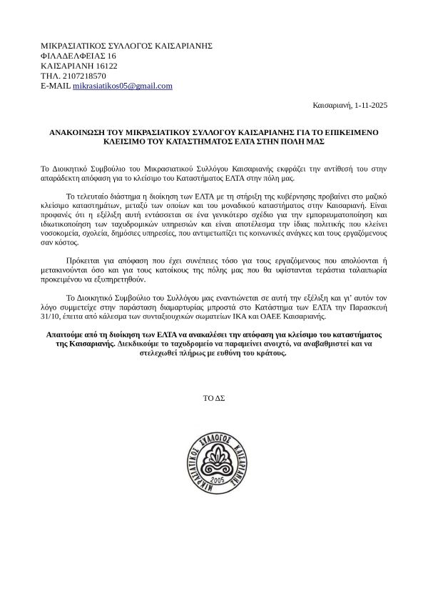 Να ανακληθεί τώρα η απαράδεκτη κλήση σε απολογία σε βάρος του Δημάρχου και 20 μελών του Δημοτικού Συμβουλίου Καισαριανής!